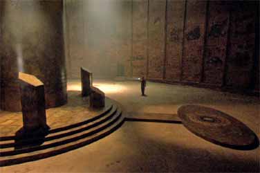 The new miniseries opens after a forty year truce has been in place. Visually there is little at this stage to differentiate the new series, either in content or stylistically, as the credits open to a shot of a familiar Colonial Shuttle, substantially the type which appeared in the original show. The diplomat which arrives carries documents which clearly show the original Cylon Model, once more tying it to the original. Things change, but not radically when the two mechanical Cylons enter and take position on either side of the door. Although their overall design has been updated, the red scanning eye betrays their origins. Then Caprica, a tall beautiful woman in a blood red outfit enters, walks up to the diplomat and asks: “Are you alive?” before planting a passionate Judas kiss on his lips. The camera pulls back to reveal a substantially redesigned Baseship. Form this moment on the stylistic changes come thick and fast when we join the story proper aboard the Galactica. Gone are the blandly bright interiors, to be replaced with a ship which has a much more used military feel. With the ship being turned into a museum, it gives Moore another chance to tie the two shows together via the exhibits.